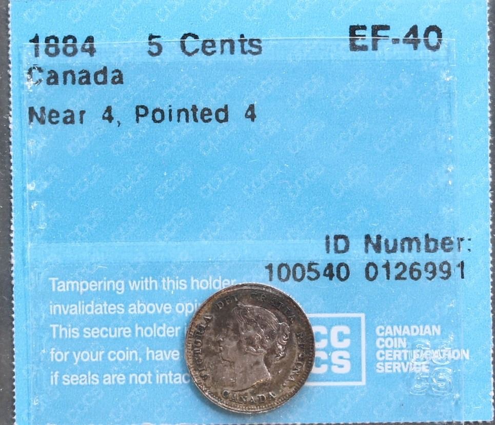 1884 5¢ Near "4" & Pointed "4" CCCS Extra Fine-40. key date.