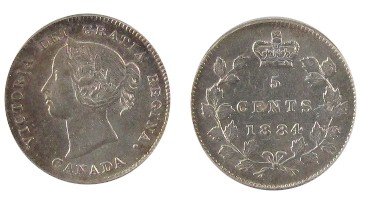 1884 5¢ PCGS AU55. Lustrous with light golden shade.