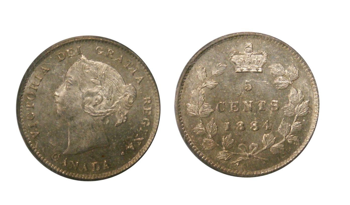 1884 5¢ PCGS MS63 Brilliant ONE OF THE FINEST KNOWN! with full luster. A very rare "Victorian" key date example. Excellent strike with clean fields and mirror surfaces. The nicest example ever handled by TCNC. One of the rarest and toughest of this se