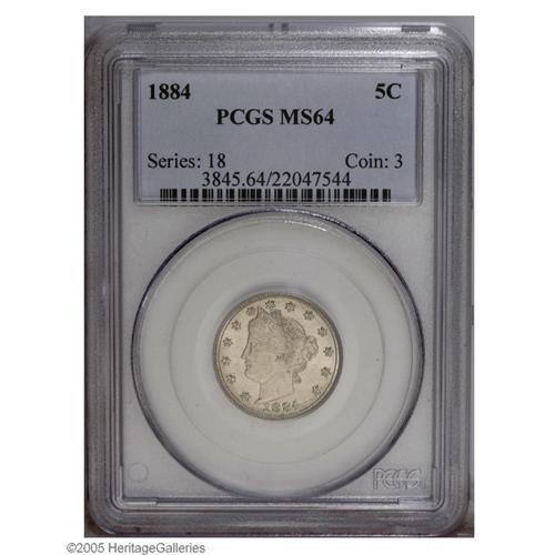1884 5C MS64 PCGS. Unusually well struck for a busines 1884[5C] MS64 PCGS.