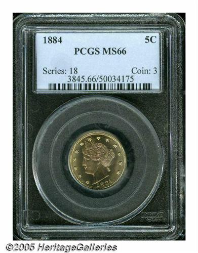 1884 5C MS66 PCGS. Fully struck, except for trivi