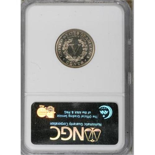 <B>1884 5C PR66 Cameo NGC.</B></I> Unlike many examples of this second-year Liberty nickel proof issue, this specimen shows both distinct contrast and considerable reflectivity in the fields. Delicate rose toning over the shining surfaces counterbalances the frosted, sharply struck devices. Census: 22 in 66 Cameo, 14 finer (9/07).<BR><BR><b>Shipping:</b> Coins & Currency (<a target="_blank" href="http://www.heritageauctions.com/common/shipping.php">view shipping information</a>)