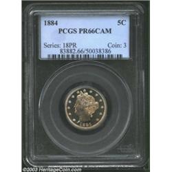 1884 5C PR66 Cameo PCGS. This early date Liberty Nickel would fit nicely into a proof type set. Both
