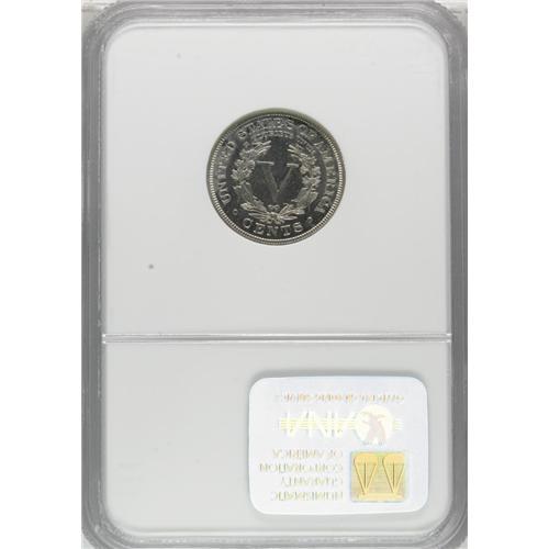 <B>1884 5C PR66 NGC.</B></I> FS-013.8. The 1 in the date is boldly repunched. Well struck with sparkling, near-pristine surfaces that display just a touch of milky patina over each side. NGC has graded just seven Superb Gems (4/07).<BR><BR><b>Shipping:</b> Coins & Currency (<a target="_blank" href="http://www.heritageauctions.com/common/shipping.php">view shipping information</a>)