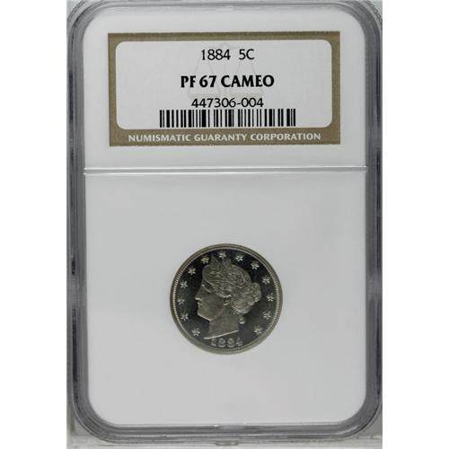 1884 5C PR67 Cameo NGC. Bright and original, with just 1884