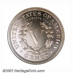 1884 5C PR67 Cameo NGC. Writing in 1995, Gloria Peters and Cynthia Mohon stated of this second-year proof Liberty Nickel: "Date seems to be available in all certified grades except...PR67 and 68." An important condition rarity, the present Superb Gem is silky-smooth from rim to rim. Razor sharp striking definition characterizes all features, and the warmly frosted devices contrast nicely with the deeply mirrored, glassy fields. Untoned. Population: 3 in 67 Cameo, none are finer at NGC, and PCGS has not seen a single Cameo specimen above the PR66 level (7/02). Important notice: We expect to be auctioning lots at the rate of 200-250 per hour. Sometimes eBay Premier live bid software cannot keep up with that pace, so we strongly recommend that you place a realistic proxy bid now as insurance to avoid disappointment. Also please note that all Heritage/CAA lots purchased through eBay Premier carry a 20% Buyer's Premium. Please make sure you read the Terms and Conditions.