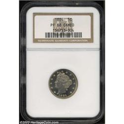 <table><tr><td><TABLE cellSpacing=0 cellPadding=0 width="100%" bgColor=#000000 border=0><TBODY> <TR><TD width="100%"><TABLE cellSpacing=1 cellPadding=3 width="100%" border=0><TBODY><TR><TD width="100%" bgColor=#79735c><FONT face=arial color=#ffffff size=3><B>Description</B> </FONT></TD></TR><TR><TD width="100%" bgColor=#ffffff><FONT face=arial size=2><B>1884 5C PR68 Cameo NGC.</B></I> This date is always available in lower grades, but for some reason, Superb quality examples (and finer) are not generally available. We now we offer the finest cameo proof certified by either of the major services. The fields are deeply mirrored with rich, satiny luster over the devices which gives the coin a sharp two-toned appearance. Lightly toned over each side. This is the single finest example thus far certified by either service (9/03). </FONT></TD></TR></TBODY></TABLE></TD></TR></TBODY></TABLE><BR><A name=PricesRealized></A><TABLE cellSpacing=0 cellPadding=0 width="100%" bgColor=#000000 border=0><TBODY><TR><TD width="100%"><TABLE cellSpacing=1 cellPadding=3 width="100%" border=0><TBODY><TR><TD width="100%" bgColor=#79735c><A name=PR><FONT face=arial color=#ffffff size=3><B>Previous Prices from Heritage Auctions</B> </FONT></A></TD></TR><TR><TD bgColor=#f6f6ed><TABLE cellSpacing=0 cellPadding=0 width="100%" border=1><TBODY><TR><TD align=middle width="33%"><B>Date</B></TD><TD align=middle width="33%"><B>Service</B></TD><TD align=middle width="33%"><B>Price</B></TD></TR><TR bgColor=whitesmoke><TD width="33%"><B>01/11/2003</B></TD><TD width="33%">NGC</TD><TD width="33%">$6,037.50</TD></TR></TBODY></TABLE></TD></TR><TR><TD bgColor=#ffffff><FONT face=arial size=1 ?>PLEASE NOTE: All prices realized reflect the final hammer price PLUS the buyer's premium in auctions that charge a buyer's premium. Each item has a notation at the top of the listing indicating whether that lot included a buyer's premium. Example: A item that sells with a final hammer price of $100 and a 20% buyer's premium will display with a price realized of $120. All information listed is intended to be as accurate as possible, but errors are possible. Please use this guide carefully and inform us of any inaccuracies. </FONT></TD></TR></TBODY></TABLE></TD></TR></TBODY></TABLE><BR><TABLE cellSpacing=0 cellPadding=0 width="100%" bgColor=#000000 border=0><TBODY><TR><TD width="100%"><TABLE cellSpacing=1 cellPadding=3 width="100%" border=0><TBODY><TR><TD width="100%" bgColor=#79735c colSpan=6><FONT face=arial color=#ffffff size=3><B>Price Guide*</B> </FONT></TD></TR><TR bgColor=#f6f6ed><TD align=middle><B>Grade</B> </TD><TD align=middle><B>Coin World<BR>(Trends)</B> </TD><TD align=middle><B>Numismedia<BR>Retail</B> </TD><TD align=middle><B>Numismedia<BR>Wholesale</B> </TD><TD align=middle><B>Coin<BR>Universe</B> </TD><TD align=middle><B>Heritage<BR>Value Index</B> </TD></TR><TR bgColor=#ffffff><TD align=middle>67</TD><TD align=right>---</TD><TD align=right>---</TD><TD align=right>---</TD><TD align=right>---</TD><TD align=right>---</TD></TR><TR style="FONT-WEIGHT: bold" bgColor=#cccfdd><TD align=middle>68</TD><TD align=right>---</TD><TD align=right>---</TD><TD align=right>---</TD><TD align=right>---</TD><TD align=right>---</TD></TR><TR bgColor=#ffffff><TD align=middle>69</TD><TD align=right>---</TD><TD align=right>---</TD><TD align=right>---</TD><TD align=right>---</TD><TD align=right>---</TD></TR><TR bgColor=#ffffff><TD colSpan=6><FONT size=1>*All information listed is intended to be as accurate as possible, but errors are possible. No item may be returned or refused based on this information which is provided as a service to our customers. You should contact each pricing source directly to determine the accuracy of this information. </FONT></TD></TR></TBODY></TABLE></TD></TR></TBODY></TABLE><BR><TABLE cellSpacing=0 cellPadding=0 width="100%" bgColor=#000000 border=0><TBODY><TR><TD width="100%"><TABLE cellSpacing=1 cellPadding=3 width="100%" border=0><TBODY><TR><TD width="100%" bgColor=#79735c><FONT face=arial color=#ffffff size=3><B>Population Guide</B> </FONT></TD></TR><TR bgColor=#ffffff><TD align=middle><!-- Begin Output of Population Grid--><TABLE cellSpacing=0 cellPadding=0 width="100%" border=0><TBODY><TR><TD vAlign=center><TABLE cellSpacing=0 width="100%" border=1 cellsadding="3"><TBODY><TR><TD vAlign=center><TABLE cellSpacing=0 cellPadding=3 width="100%" border=1><TBODY><TR><TD vAlign=center align=middle bgColor=#f0f1e8 colSpan=2 <CENTER><FONT face=Arial size=2><B>PCGS Pop </B></FONT><CENTER></CENTER></TD><TD vAlign=center align=middle bgColor=#f0f1e8 colSpan=2><CENTER><FONT face=Arial size=2><B>NGC Pop</B></CENTER></FONT></TD></TR><TR><TD vAlign=center><FONT face=Arial size=2>(68)</FONT> </TD><TD vAlign=center align=right><FONT face=Arial size=2>0</FONT> </TD><TD vAlign=center><FONT face=Arial size=2>(68)</FONT> </TD><TD vAlign=center align=right><FONT face=Arial size=2>1</FONT> </TD></TR><TR><TD vAlign=center><FONT face=Arial size=2>(>68)</FONT> </TD><TD vAlign=center align=right><FONT face=Arial size=2>0</FONT> </TD><TD vAlign=center><FONT face=Arial size=2>(>68)</FONT> </TD><TD vAlign=center align=right><FONT face=Arial size=2>0</FONT> </TD></TR></TBODY></TABLE></TD></TR></TBODY></TABLE></TD></TR></TBODY></TABLE><!-- End Output of Population Grid--></TD></TR></TBODY></TABLE></TD></TR></TBODY></TABLE><BR><TABLE cellSpacing=0 cellPadding=0 width="100%" bgColor=#000000 border=0><TBODY><TR> Important notice: Heritage usually auctions material at the rate of 200-250 lots per hour. On some occasions eBay Live bid software or the Internet may not be able to keep up with the pace of the auction. We recommend placing a realistic absentee bid now as insurance to avoid disappointment. Occasionally the auctioneer may eliminate or reject an eBay Live bid, and the auctioneer may also reopen a lot after the close of the eBay live bidding (usually because we missed an audience bid), and may reject your bid even if it shows you as the winning bidder