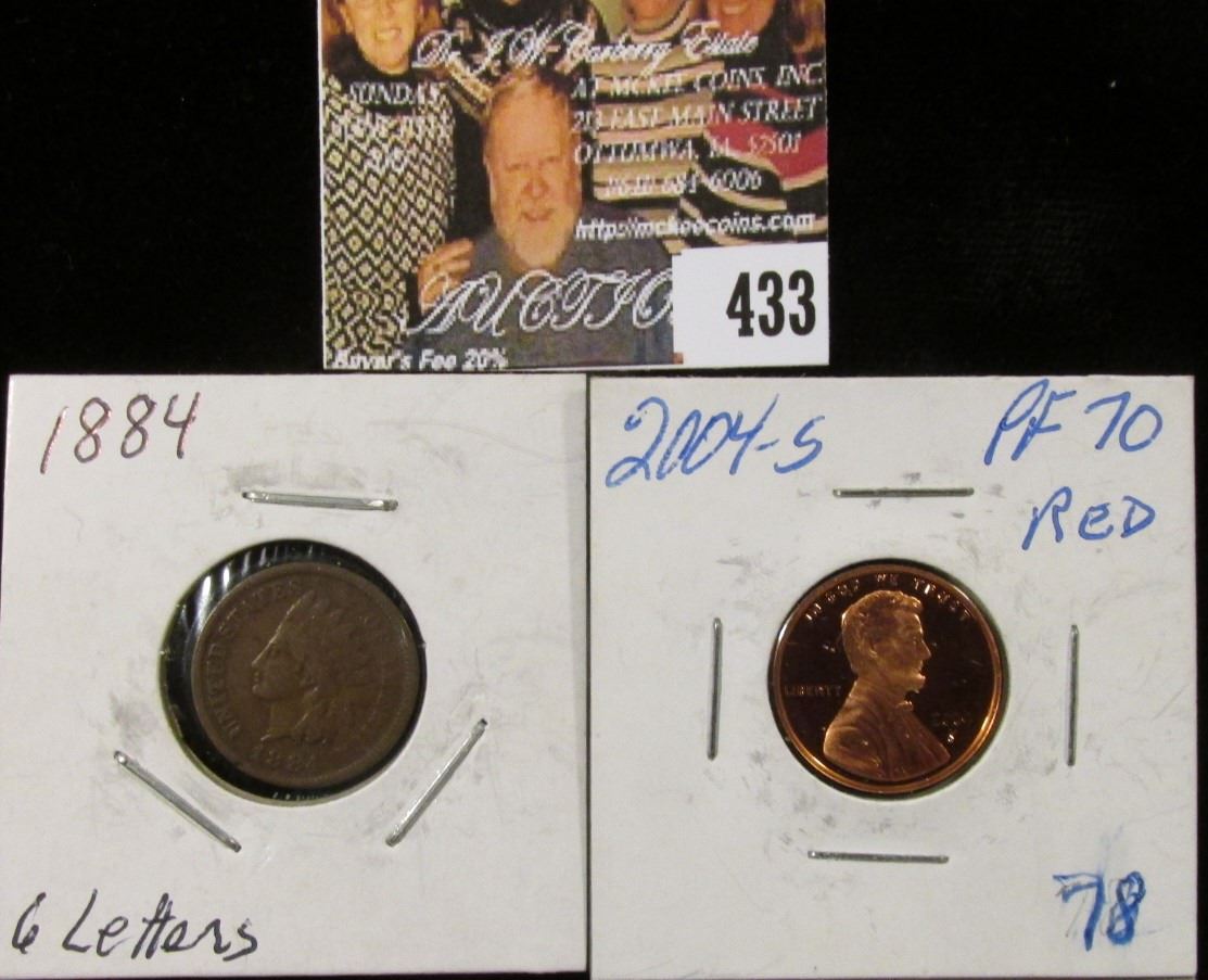 1884 6 partial letters Indian Head Cent & 2004 S PF70 Red Lincoln Cent.