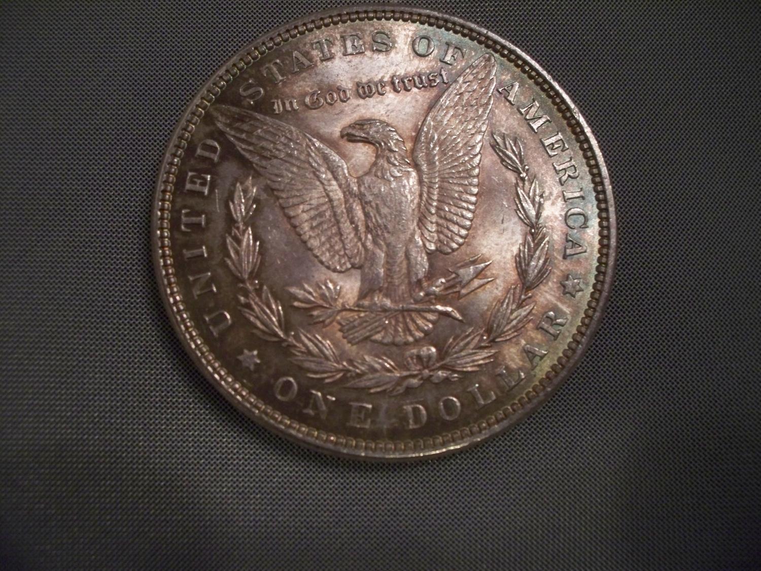 1884 Brilliant Uncirculated Morgan Silver Dollar with Beautiful Rainbow Toning!