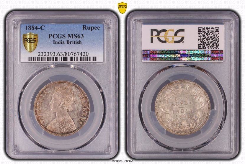 1884-C India British Rupee - PCGS MS63