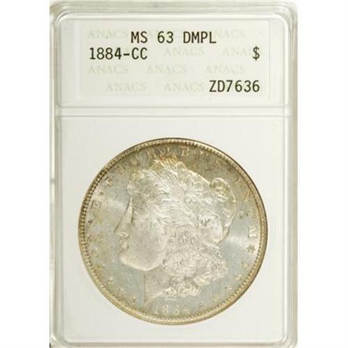 <B>1884-CC $1 MS63 Deep Mirror Prooflike ANACS.</B></I> NGC Census: (287/767). PCGS Population (678/1767). Numismedia Wsl. Price: $440. (#97153)<BR><BR><b>Shipping:</b> Coins & Currency (<a target="_blank" href="http://www.heritageauctions.com/common/shipping.php">view shipping information</a>)