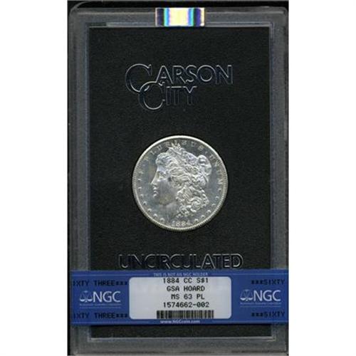 <B>1884-CC $1 GSA HOARD MS63 Prooflike NGC.</B></I><BR><BR><b>Shipping:</b> Coins & Currency (<a target="_blank" href="http://www.heritageauctions.com/common/shipping.php">view shipping information</a>)