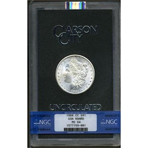 <B>1884-CC $1 MS64 NGC.</B></I> NGC Census: (5449/4018). PCGS Population (11664/7249). Mintage: 1,136,000. Numismedia Wsl. Price for NGC/PCGS coin in MS64: $196. (#7152)<BR><BR><B>Coin Engraver:</B> George T. Morgan<BR><BR><b>Shipping:</b> Coins & Currency (<a target="_blank" href="http://www.heritageauctions.com/common/shipping.php">view shipping information</a>)
