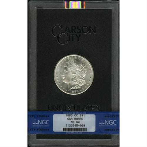 <B>1884-CC $1 MS64 NGC.</B></I> The Box and Certificate of Issue are included.<BR>NGC Census: (5566/4061). PCGS Population (11753/7324). Mintage: 1,136,000. Numismedia Wsl. Price for NGC/PCGS coin in MS64: $196. (#7152)<BR><BR><B>Coin Engraver:</B> George T. Morgan<BR><BR><b>Shipping:</b> Coins & Currency (<a target="_blank" href="http://www.heritageauctions.com/common/shipping.php">view shipping information</a>)