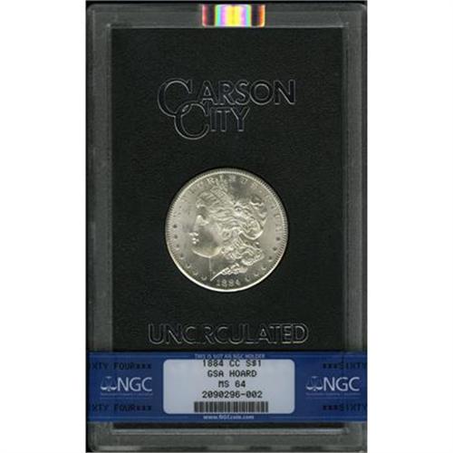 <B>1884-CC $1 MS64 NGC.</B></I> NGC Census: (5566/4061). PCGS Population (11753/7324). Mintage: 1,136,000. Numismedia Wsl. Price for NGC/PCGS coin in MS64: $196. (#7152)<BR><BR><B>Coin Engraver:</B> George T. Morgan<BR><BR><b>Shipping:</b> Coins & Currency (<a target="_blank" href="http://www.heritageauctions.com/common/shipping.php">view shipping information</a>)