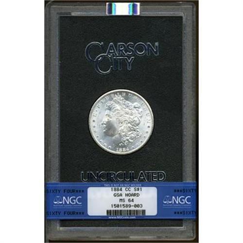 <B>1884-CC $1 MS64 NGC.</B></I> NGC Census: (5702/4131). PCGS Population (11871/7408). Mintage: 1,136,000. Numismedia Wsl. Price for NGC/PCGS coin in MS64: $200. (#7152)<BR><BR><B>Coin Engraver:</B> George T. Morgan<BR><BR><b>Shipping:</b> Coins & Currency (<a target="_blank" href="http://www.heritageauctions.com/common/shipping.php">view shipping information</a>)