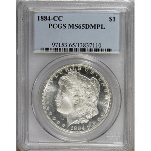 <B>1884-CC $1 MS65 Deep Mirror Prooflike PCGS.</B></I> Magically deep reflectivity is evident in the jet-black fields, and the snow-white devices are fully frosted. Well struck with a few scattered, light abrasions. The technical and aesthetic quality of this Gem should excite the interest of any specialist in Deep Mirror Prooflike dollars. <BR><BR><b>Shipping:</b> Coins & Currency (<a target="_blank" href="http://www.heritageauctions.com/common/shipping.php">view shipping information</a>)