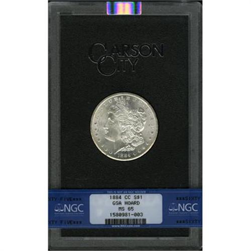 <B>1884-CC $1 MS65 NGC. </B></I><BR><BR><B>Coin Engraver:</B> George T. Morgan<BR><BR><b>Shipping:</b> Coins & Currency (<a target="_blank" href="http://www.heritageauctions.com/common/shipping.php">view shipping information</a>)