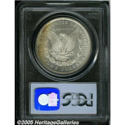 <B>1884-CC<img border='0' src='http://www.heritagecoins.com/images/star.gif' width=10 height=10>$1 MS65 PCGS.</B></I> Fully struck with emerald-green and golden-rose toning covering the obverse while the reverse is mostly brilliant.