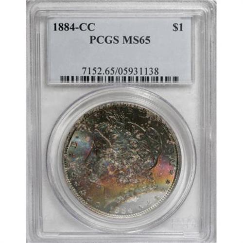 <B>1884-CC $1 MS65 PCGS.</B></I> PCGS Population (5871/1296). NGC Census: (3309/663). Mintage: 1,136,000. Numismedia Wsl. Price for NGC/PCGS coin in MS65: $340. (#7152)<BR><BR><B>Coin Engraver:</B> George T. Morgan<BR><BR><b>Shipping:</b> Coins & Currency (<a target="_blank" href="http://www.heritageauctions.com/common/shipping.php">view shipping information</a>\)