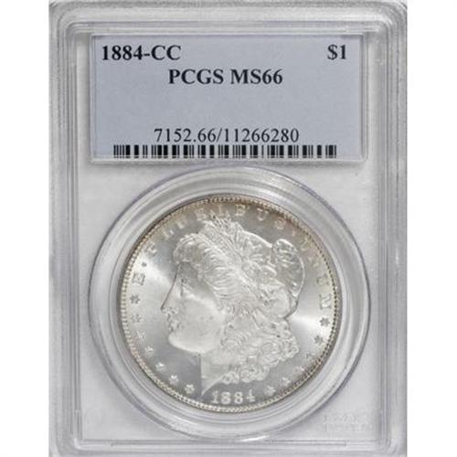 <B>1884-CC $1 MS66 PCGS.</B></I> The crisply struck devices exhibit wonderful frost on this Carson City dollar, from an issue made famous by the GSA sales. Delicate touches of gold and claret color at the margins give this Premium Gem an elegant aura.<BR><BR><b>Shipping:</b> Coins & Currency (<a target="_blank" href="http://www.heritageauctions.com/common/shipping.php">view shipping information</a>)