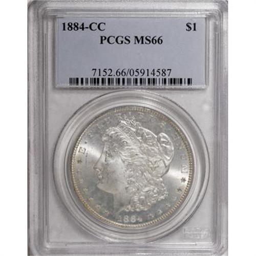<B>1884-CC $1 MS66 PCGS.</B></I> A well executed strike leaves sharp definition on the design features, including the hair over Liberty's ear and the eagle's breast feathers. Wisps of faint olive-green adhere to lustrous surfaces that are impeccably preserved.<BR><BR><B>Coin Engraver:</B> George T. Morgan<BR><BR><b>Shipping:</b> Coins & Currency (<a target="_blank" href="http://www.heritageauctions.com/common/shipping.php">view shipping information</a>)