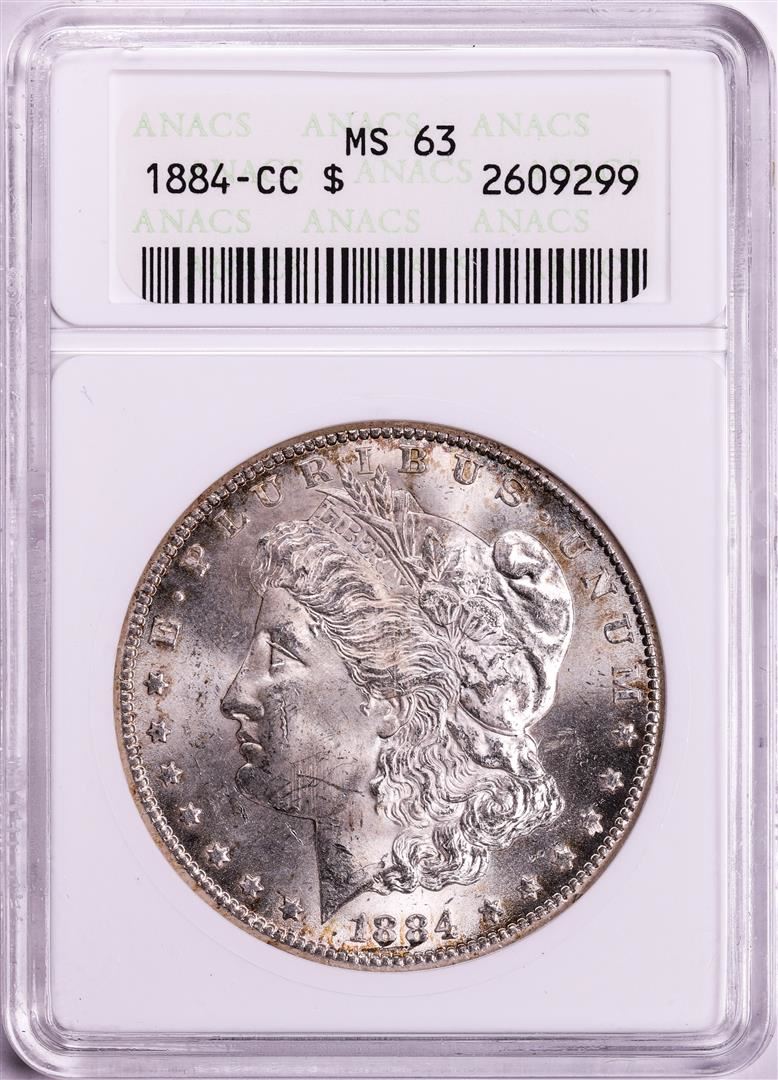 1884-CC $1 Morgan Silver Dollar Coin ANACS MS63 Old Soap Box Holder