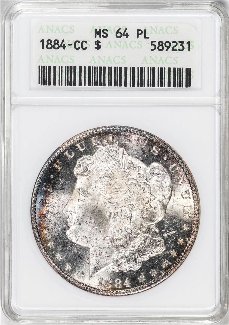 One 1884-CC $1 Morgan Silver Dollar Coin ANACS MS64 PL. ANACS Certified.
