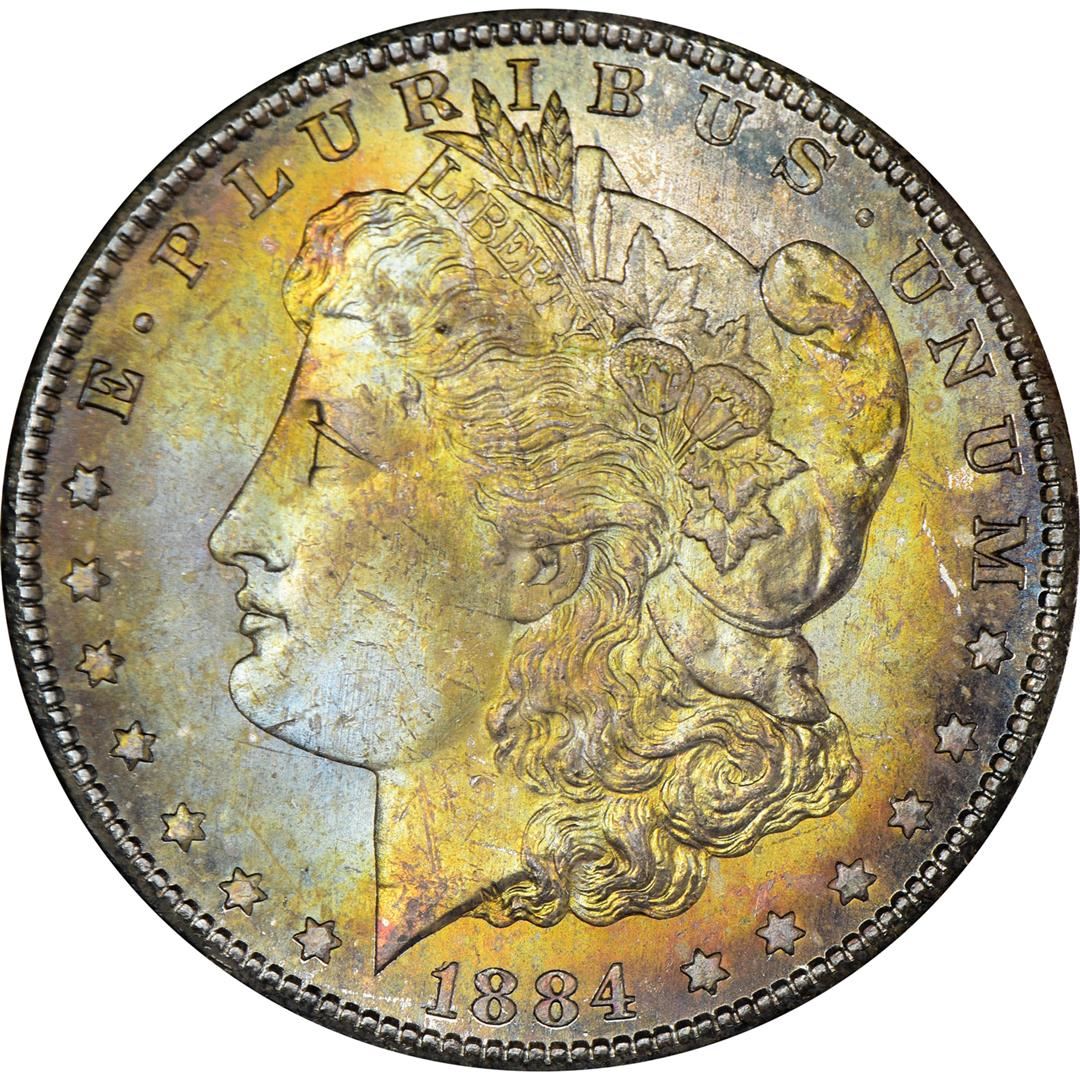 One 1884-CC $1 Morgan Silver Dollar Coin Amazing Toning.