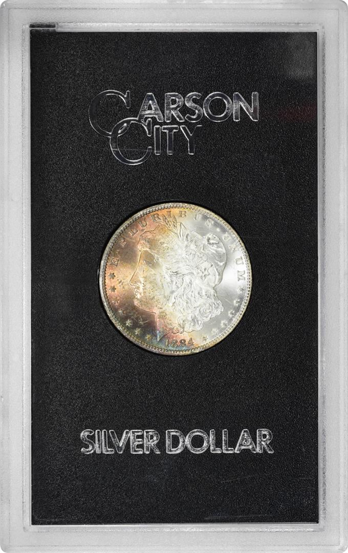 One 1884-CC $1 Morgan Silver Dollar Coin GSA Hoard Amazing Toning.