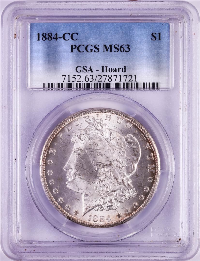 One 1884-CC $1 Morgan Silver Dollar Coin GSA Hoard PCGS MS63. PCGS Graded.