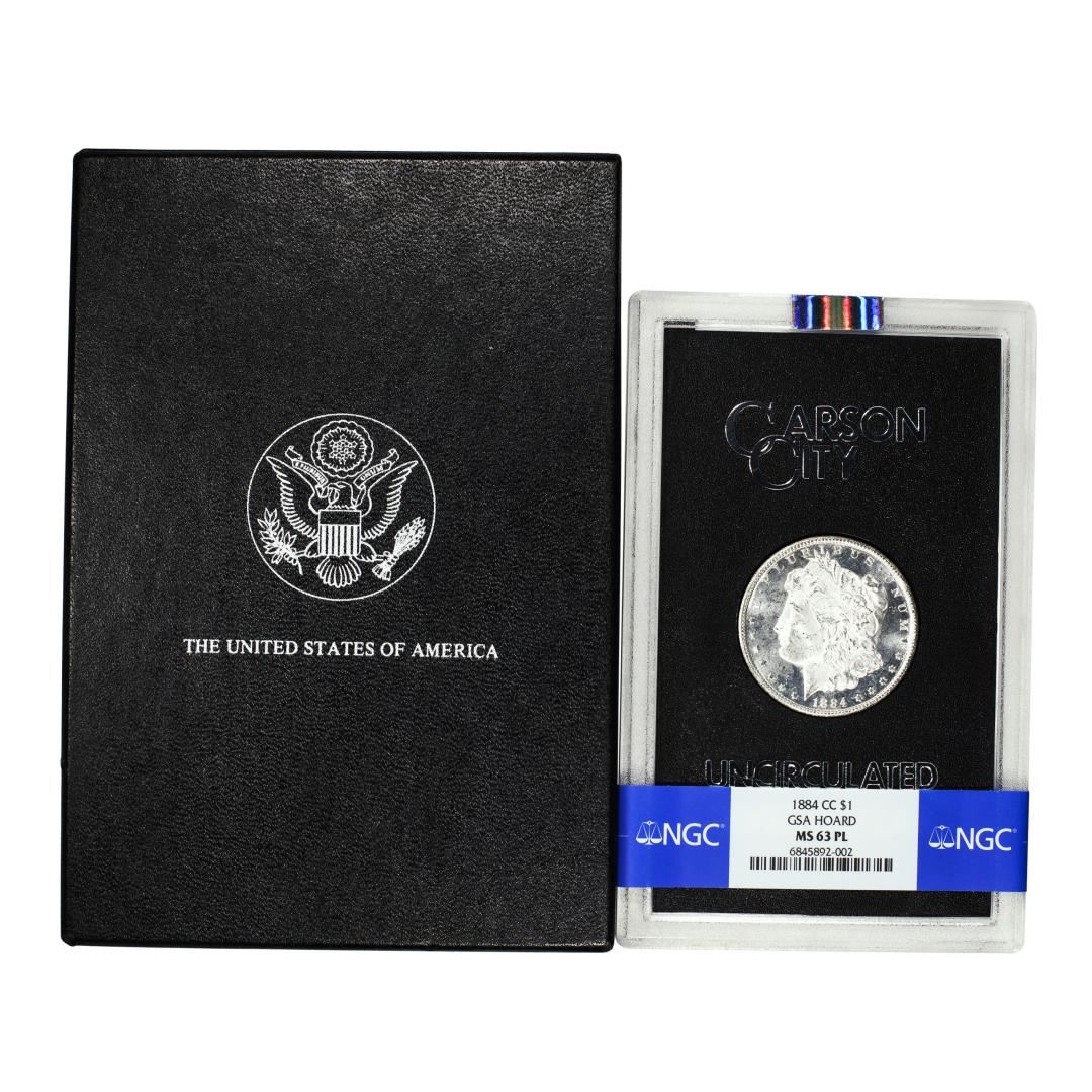 1884-CC $1 Morgan Silver Dollar Coin GSA Hoard Uncirculated NGC MS63PL w/Box