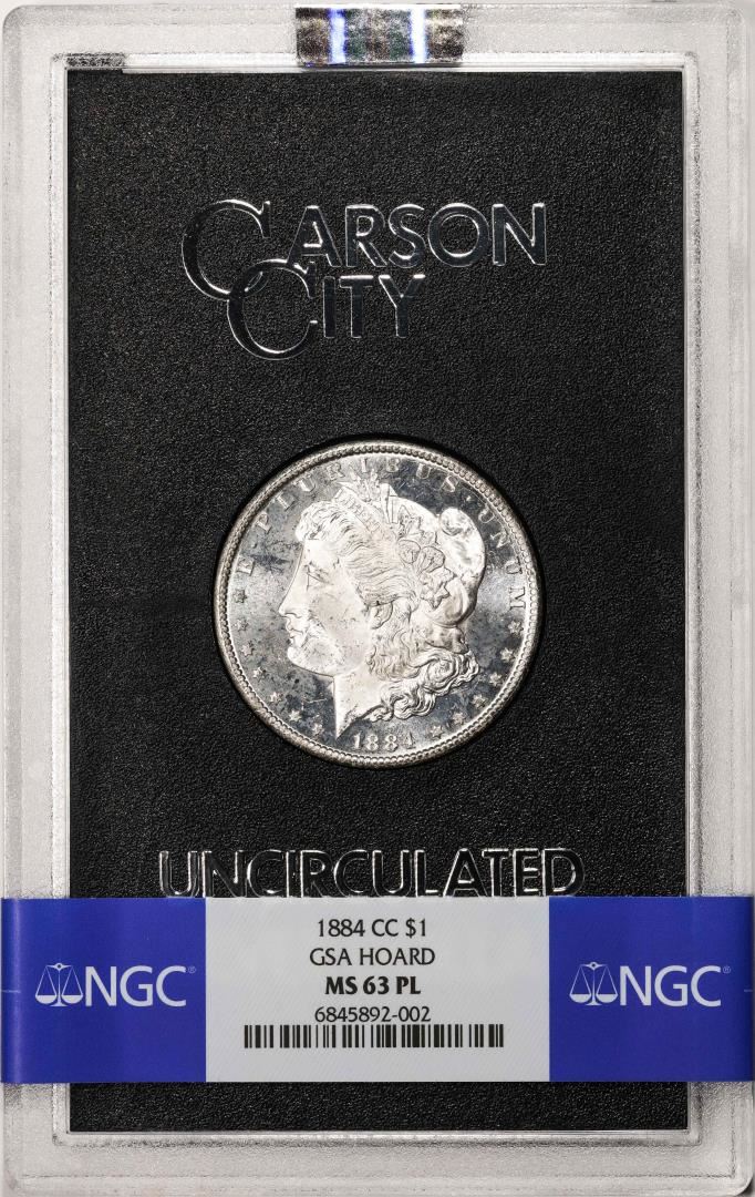 One 1884-CC $1 Morgan Silver Dollar Coin GSA Hoard Uncirculated NGC MS63PL w/Box. NGC Certified.