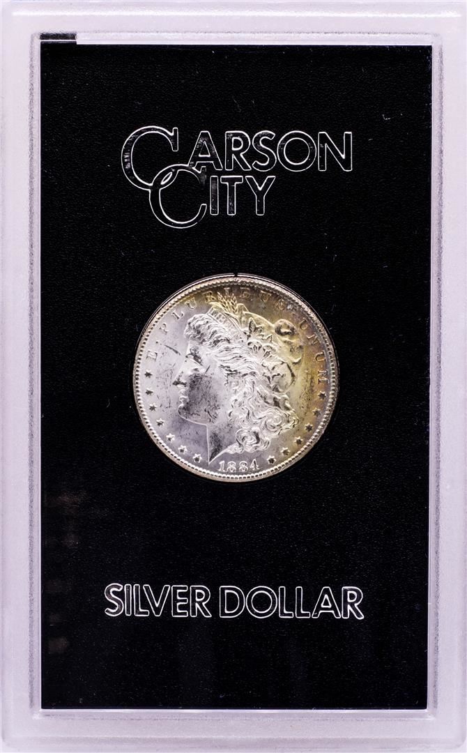 1884-CC $1 Morgan Silver Dollar Coin GSA Hoard Uncirculated w/Box & COA Nice Toning