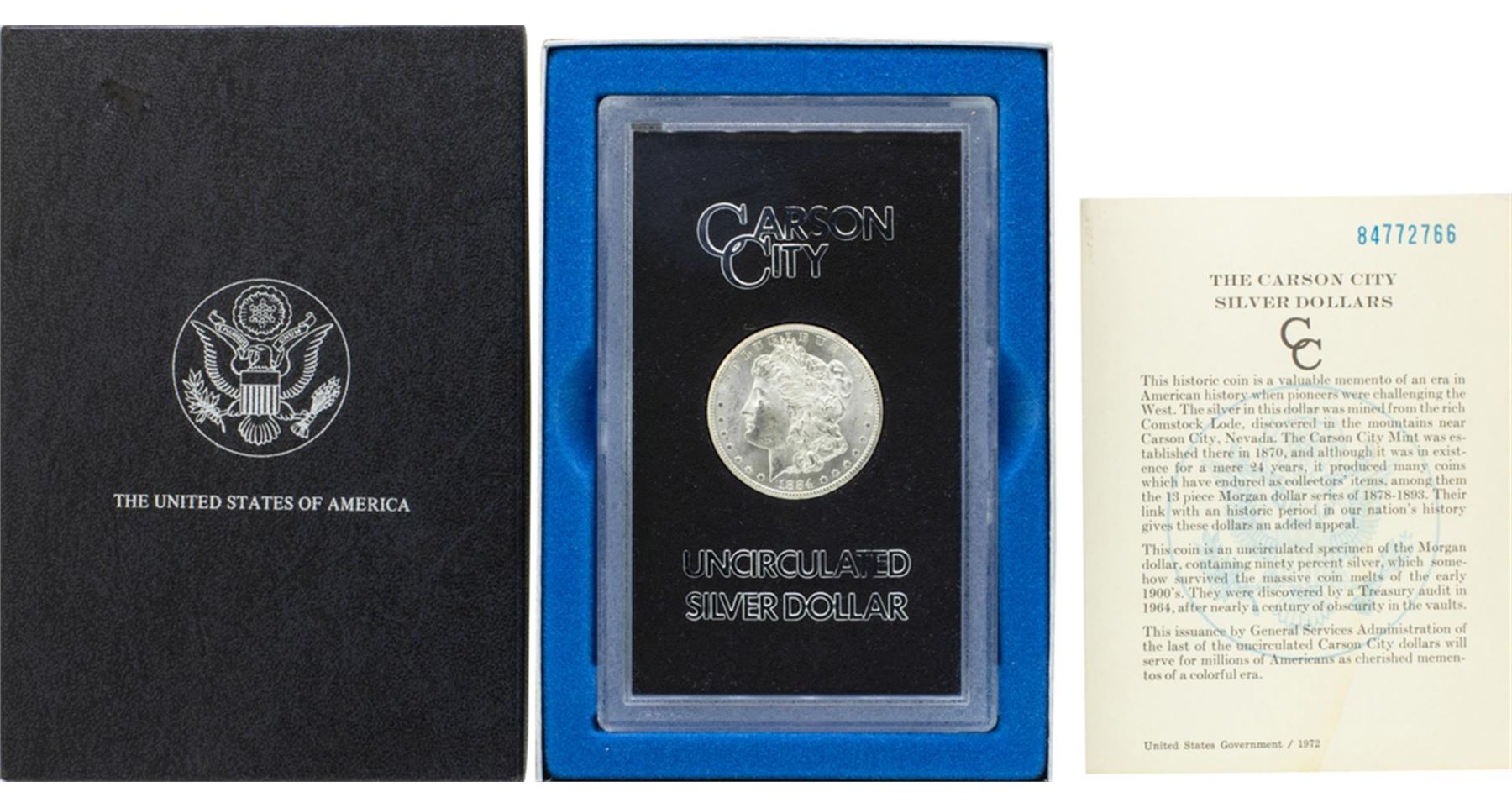 One 1884-CC $1 Morgan Silver Dollar Coin GSA Hoard Uncirculated w/ Box & COA.