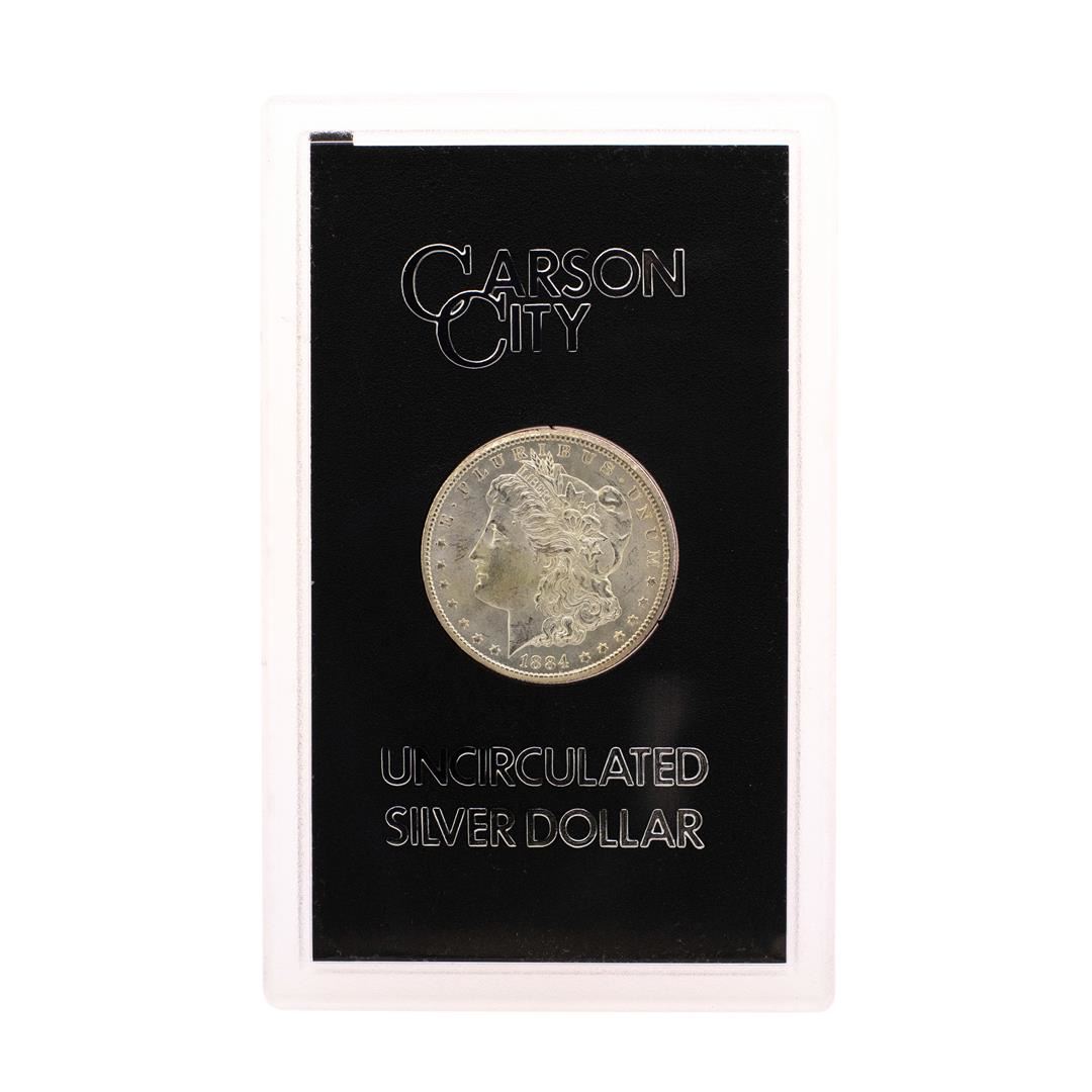 One 1884-CC $1 Morgan Silver Dollar Coin GSA Hoard Uncirculated w/ Box & COA.