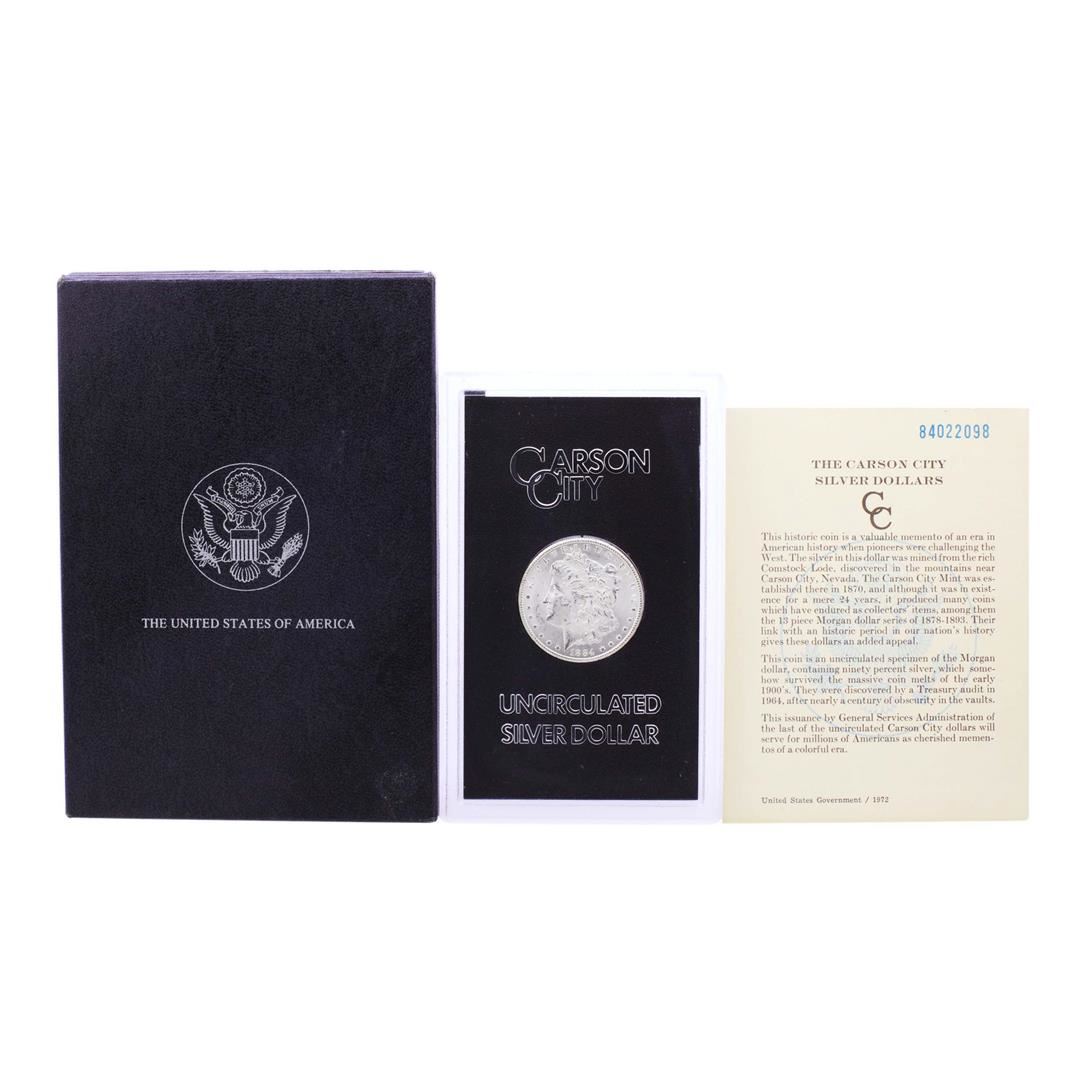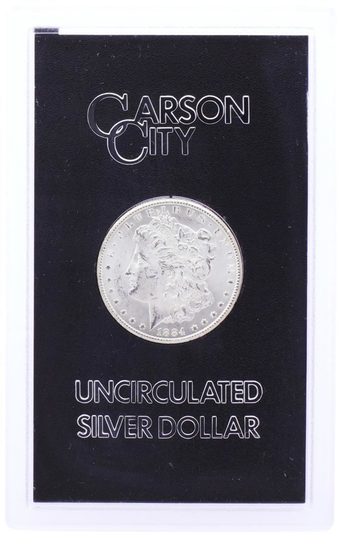 One 1884-CC $1 Morgan Silver Dollar Coin GSA Hoard Uncirculated w/Box & COA.