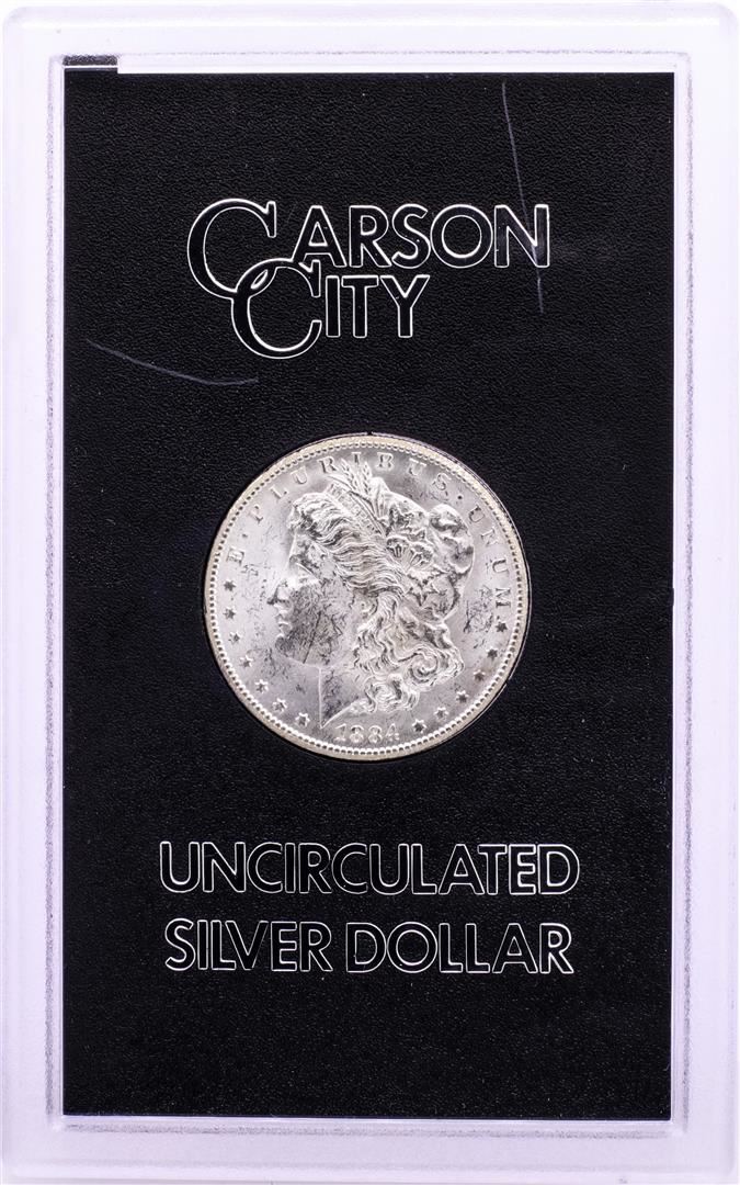 One 1884-CC $1 Morgan Silver Dollar Coin GSA Hoard Uncirculated w/Box & COA.