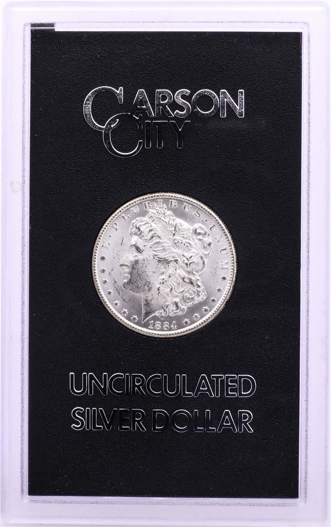 One 1884-CC $1 Morgan Silver Dollar Coin GSA Hoard Uncirculated w/Box & COA.