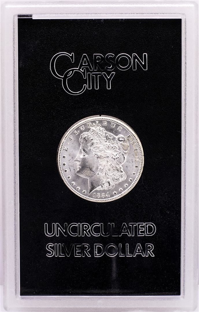 One 1884-CC $1 Morgan Silver Dollar Coin GSA Hoard Uncirculated w/Box & COA.