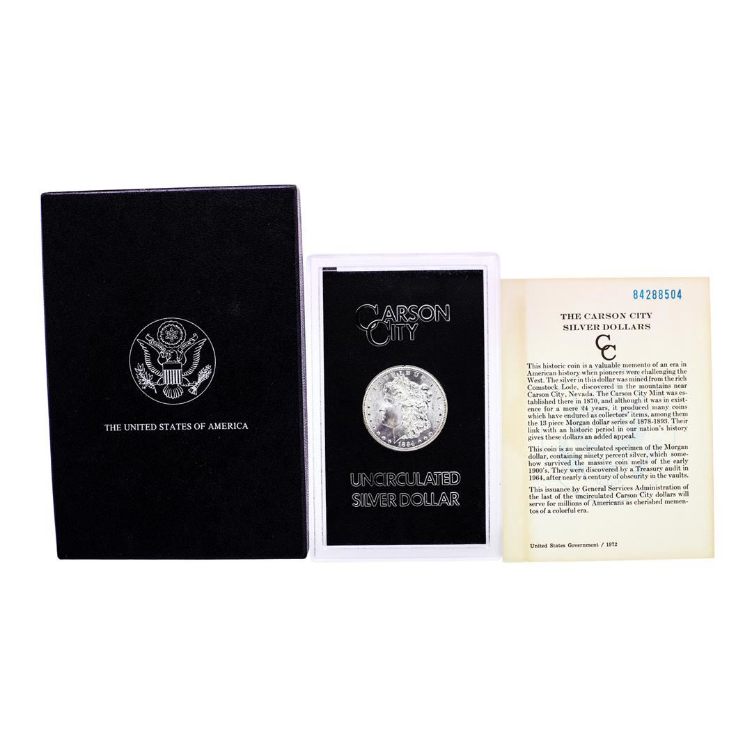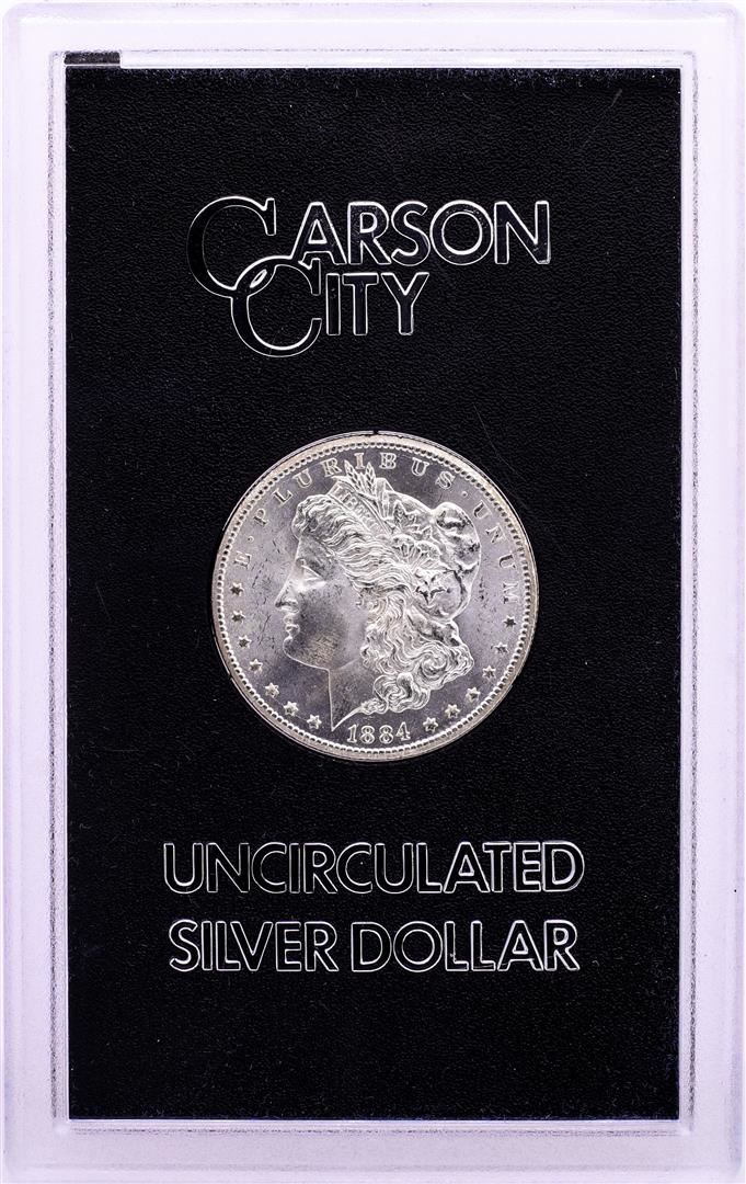 One 1884-CC $1 Morgan Silver Dollar Coin GSA Hoard Uncirculated w/Box & COA.