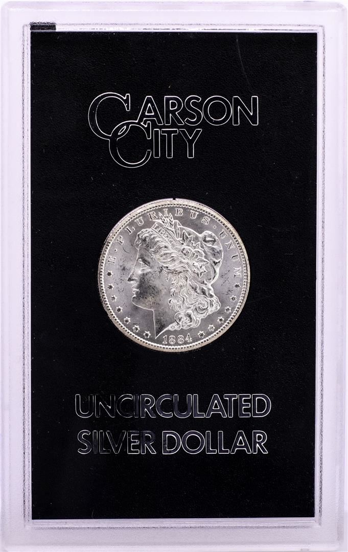 One 1884-CC $1 Morgan Silver Dollar Coin GSA Hoard Uncirculated w/Box & COA.