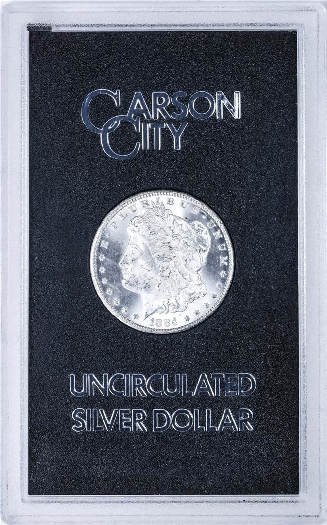 One 1884-CC $1 Morgan Silver Dollar Coin GSA Hoard Uncirculated w/Box & COA.