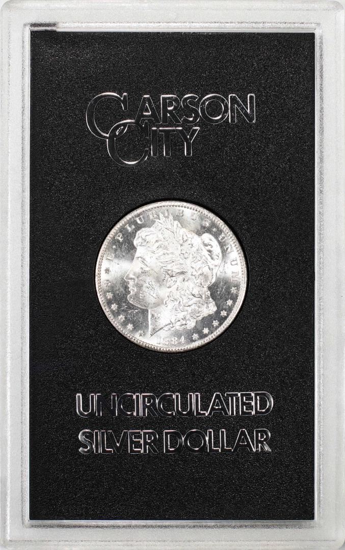 One 1884-CC $1 Morgan Silver Dollar Coin GSA Hoard Uncirculated w/Box & COA.