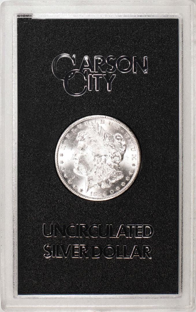 One 1884-CC $1 Morgan Silver Dollar Coin GSA Hoard Uncirculated w/Box & COA.