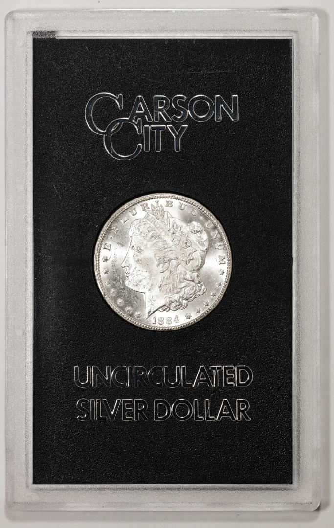 One 1884-CC $1 Morgan Silver Dollar Coin GSA Hoard Uncirculated w/Box & COA.