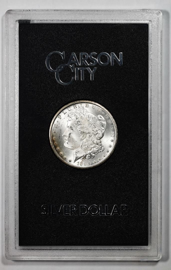 One 1884-CC $1 Morgan Silver Dollar Coin GSA Hoard Uncirculated w/Box & COA.