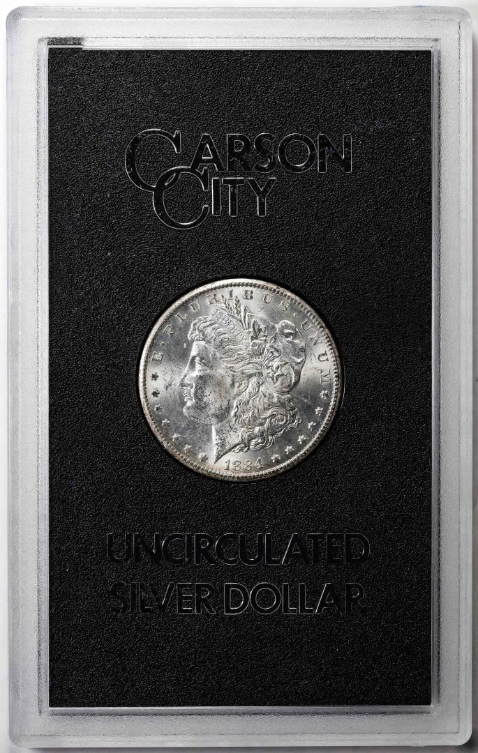 One 1884-CC $1 Morgan Silver Dollar Coin GSA Hoard Uncirculated w/Box & COA.