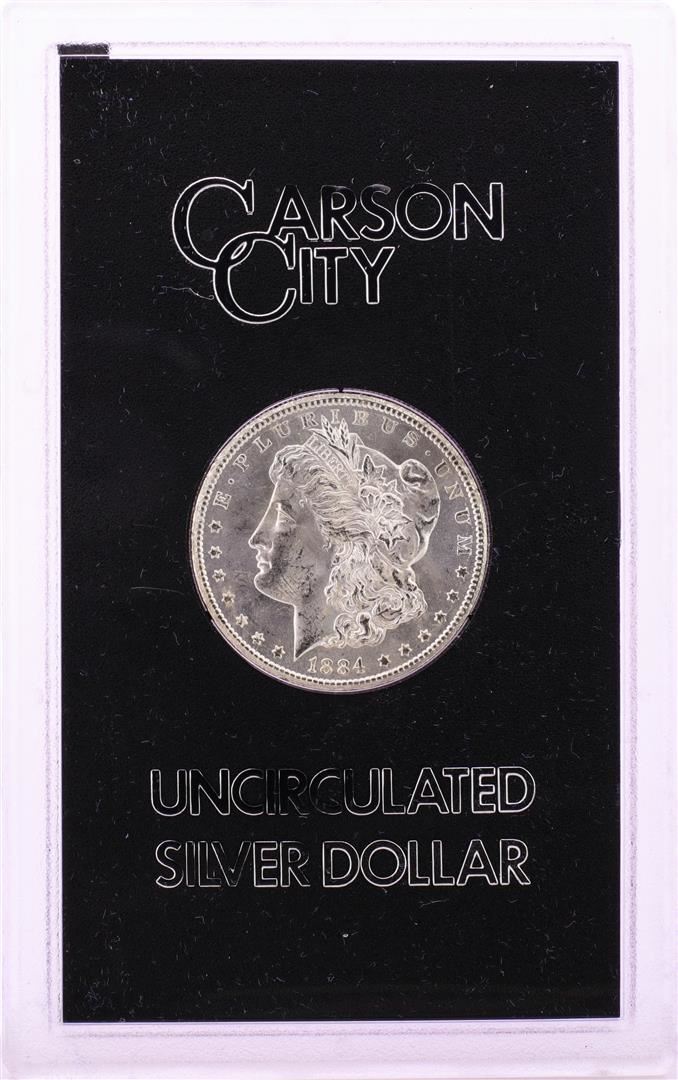 One 1884-CC $1 Morgan Silver Dollar Coin GSA Hoard Uncirculated with Box & COA.