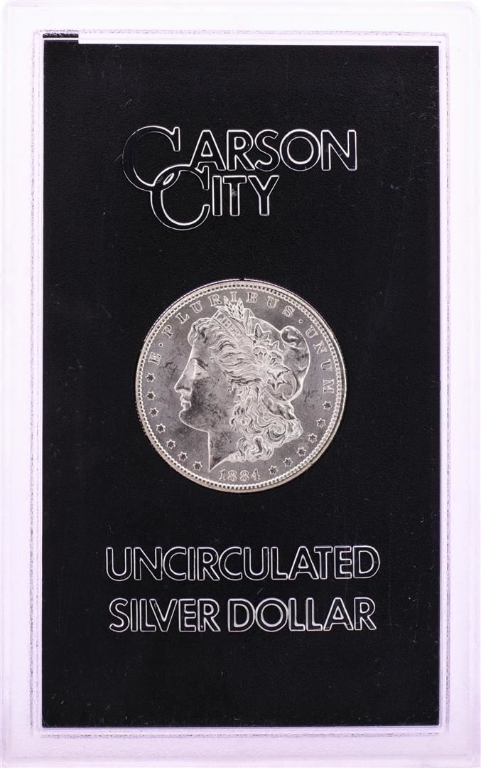 One 1884-CC $1 Morgan Silver Dollar Coin GSA Hoard Uncirculated with Box & COA.